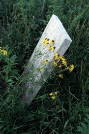 The wind seems to whisper echoes of the people buried in the cemetery. A grasshopper flits off the headstone of a woman buried with her infant child. A bee collects nectar from a bright-red royal catchfly. The gentle hum of insects and the twittering of birds in bur oaks create a tiny universe that lulls the observer. One begins to muse about a time when pioneers tried to subdue the wild terrain and, in death, succumbed to it.